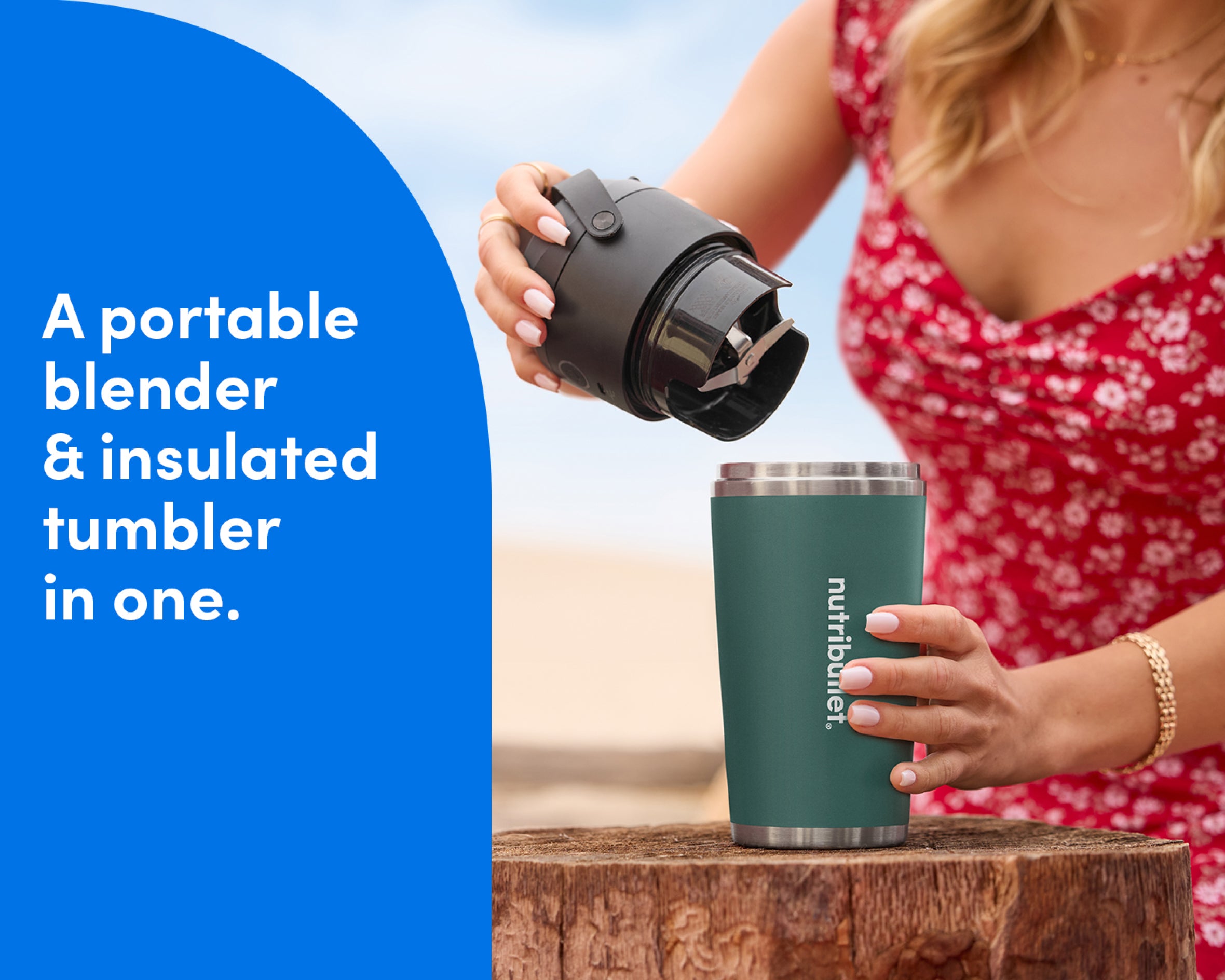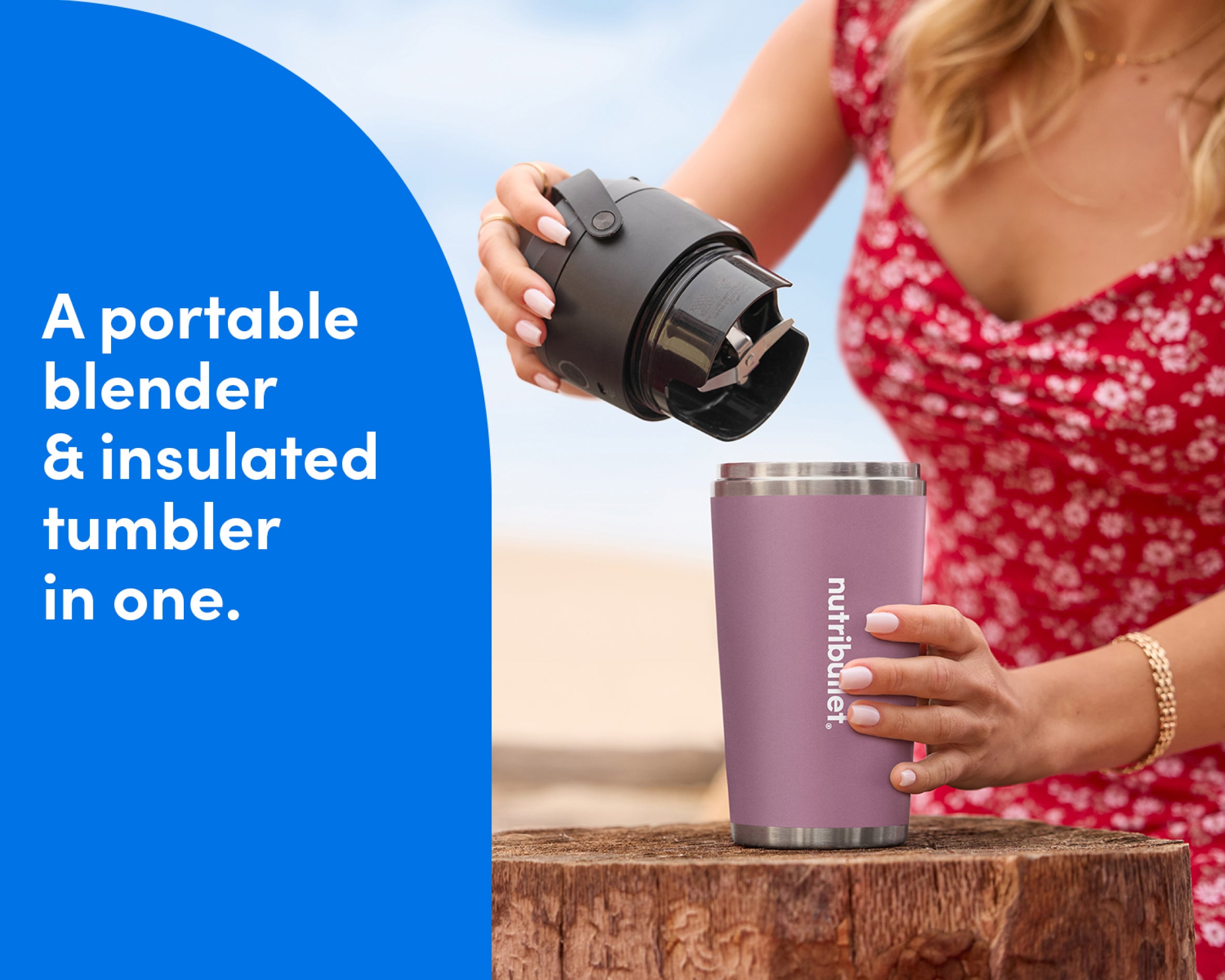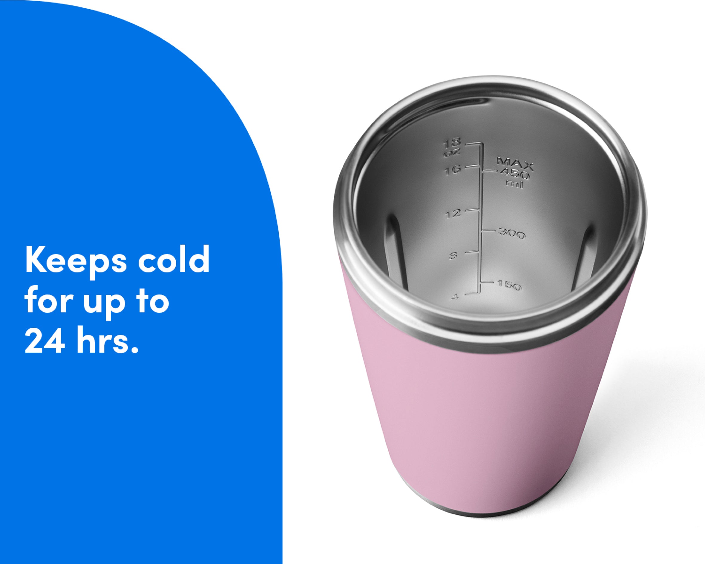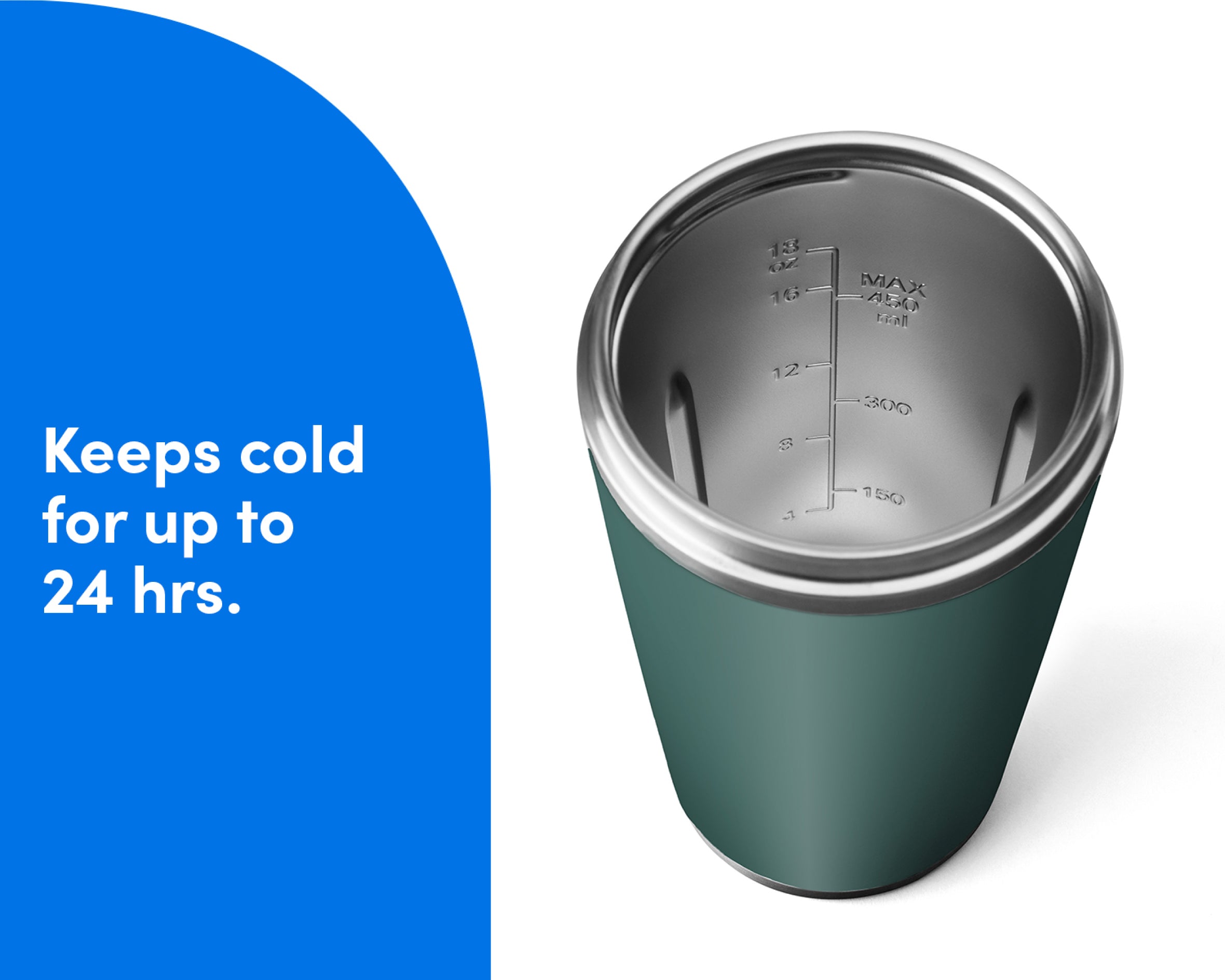 The stainless steel tumbler keeps blends cold up to 24 hours.