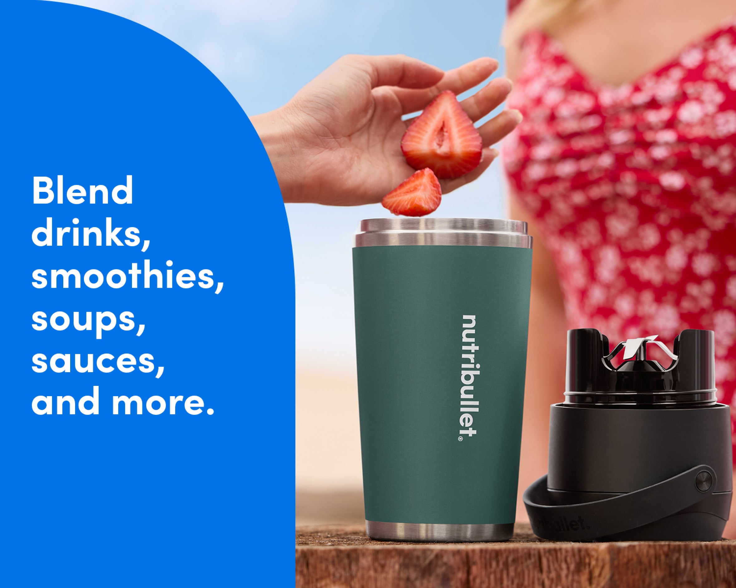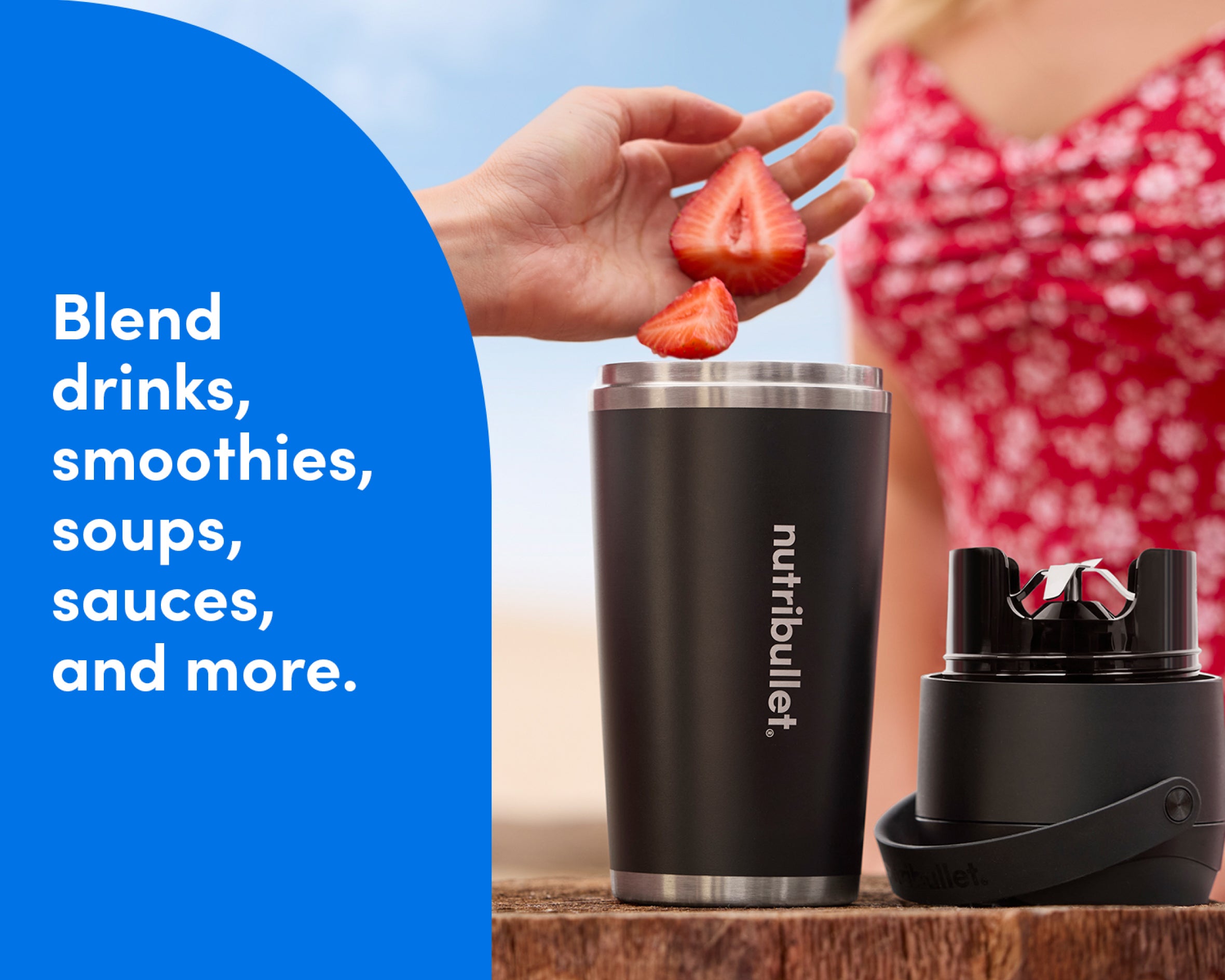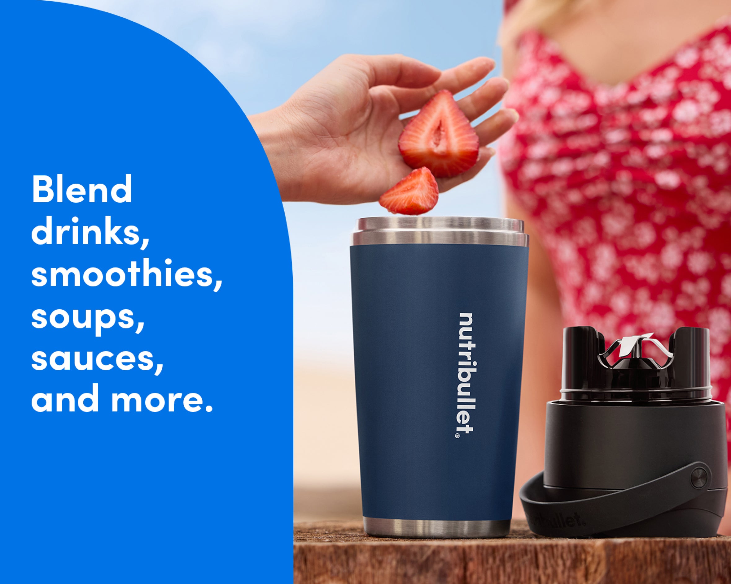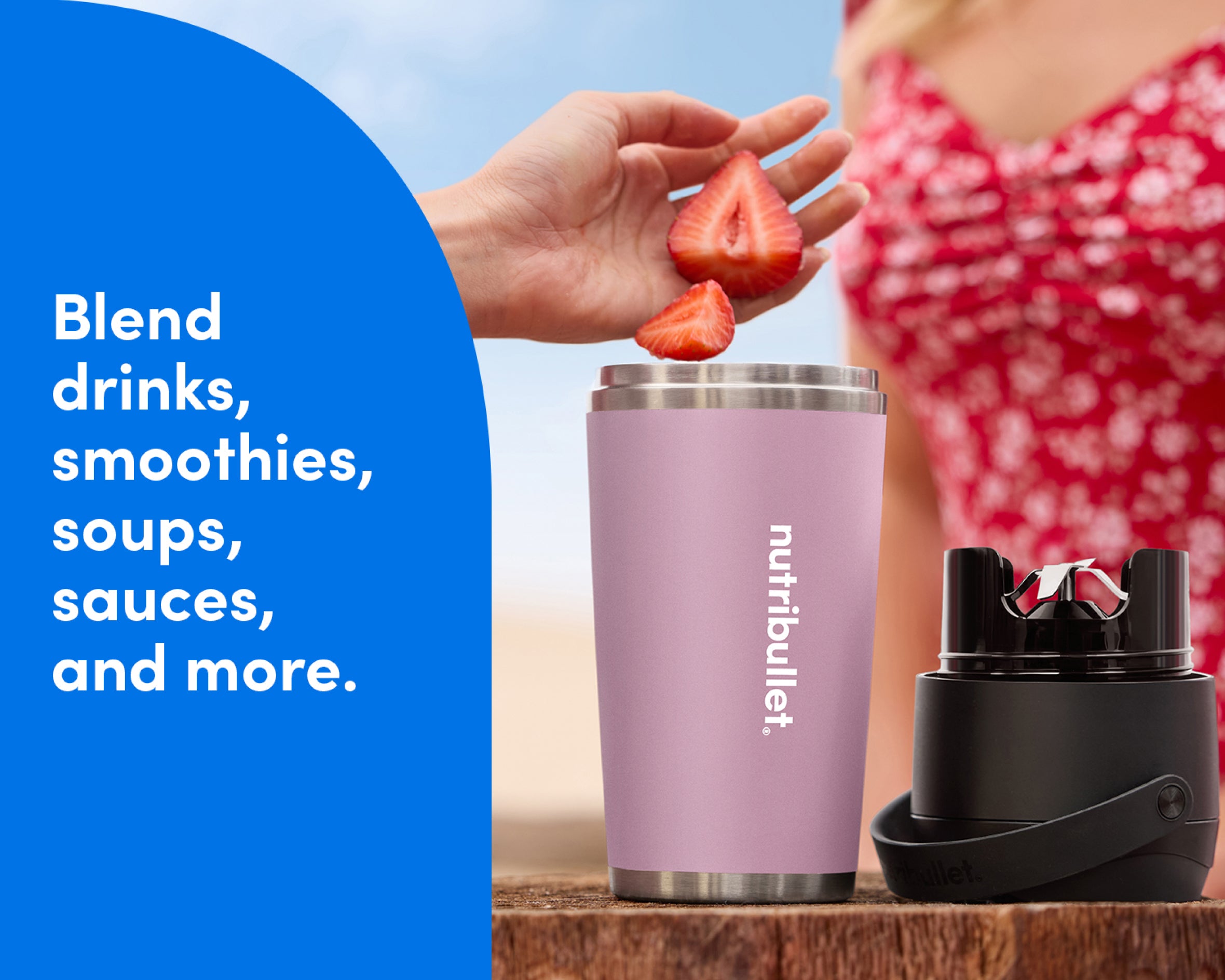 The stainless steel tumbler keeps blends cold up to 24 hours.