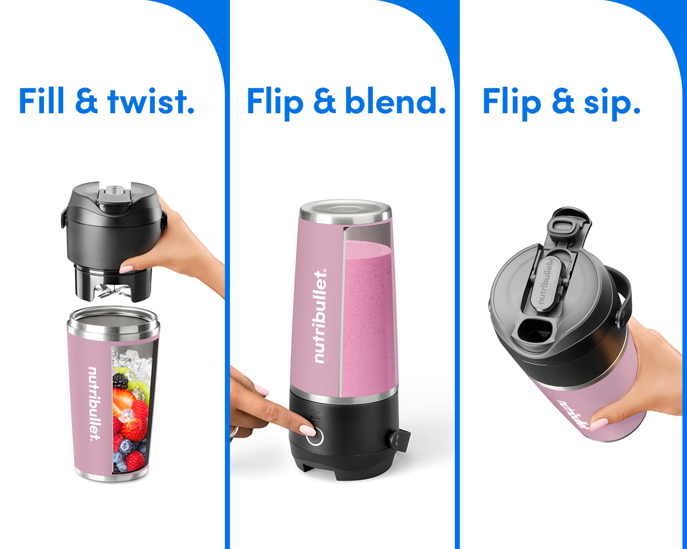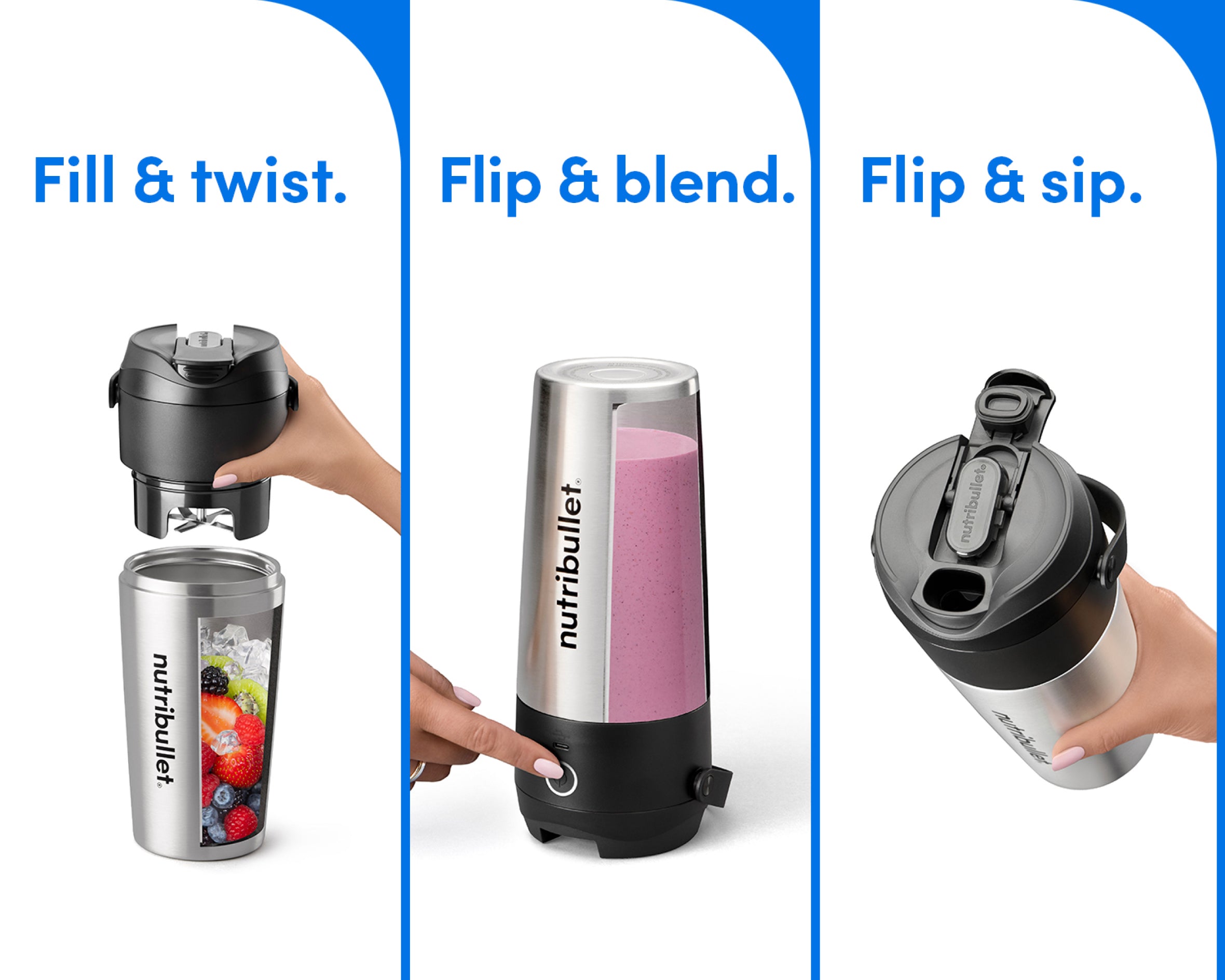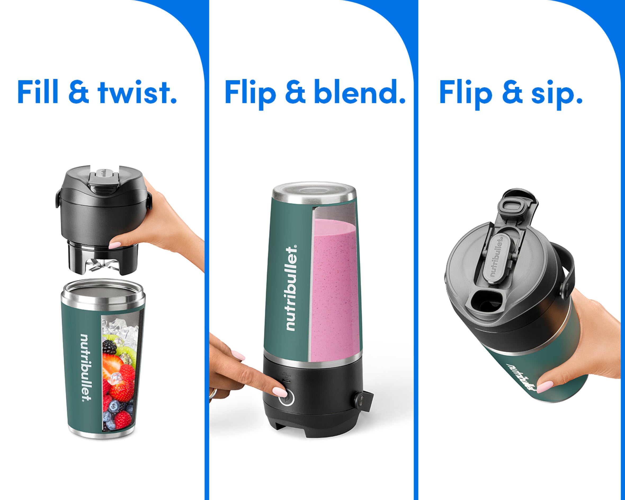Packed with an 11.1V high-torque motor, the Flip has 50% more battery power* than most standard portable blenders and is capable of blending ice, most frozen fruits, and many fresh ingredients to make smoothies on the go.