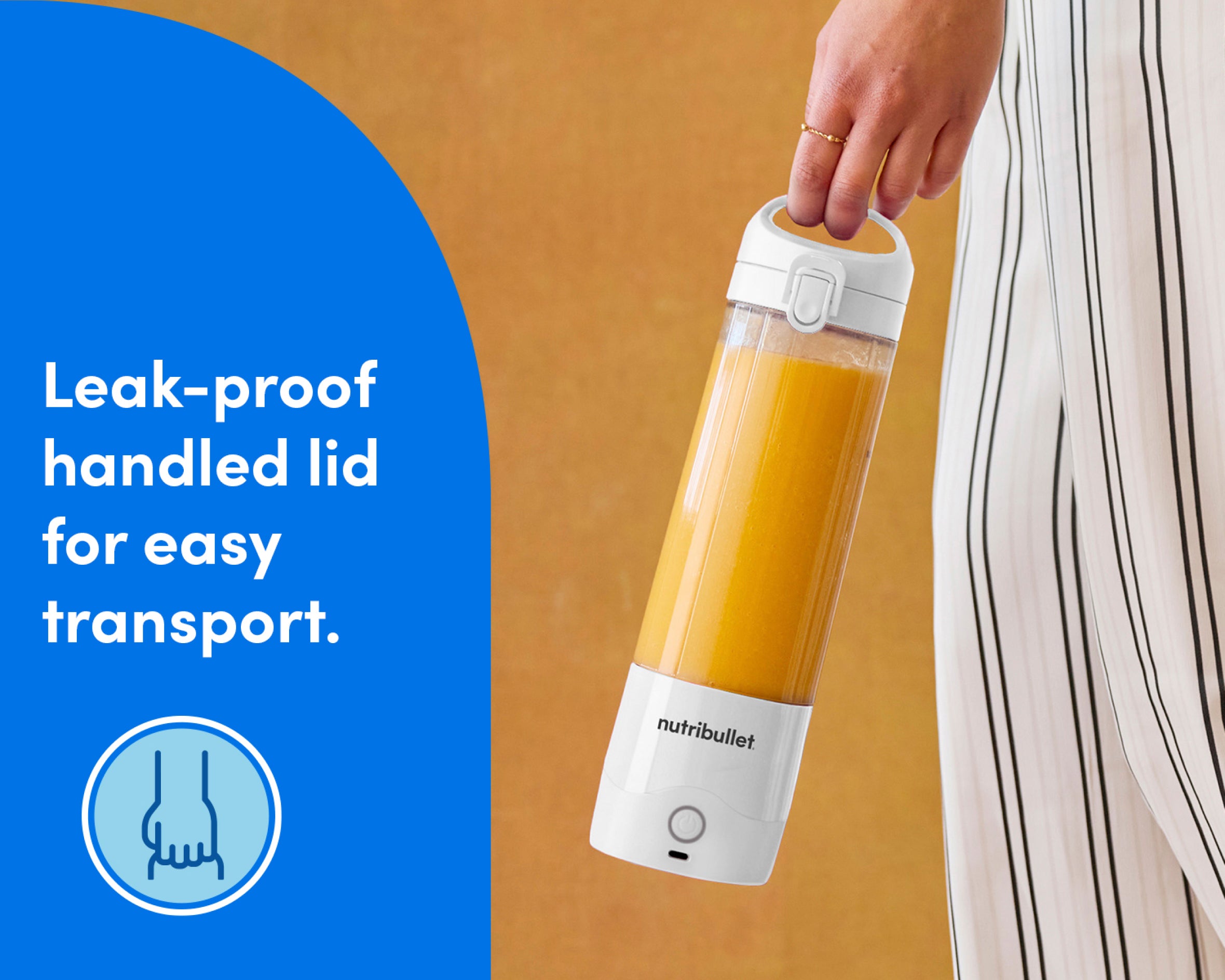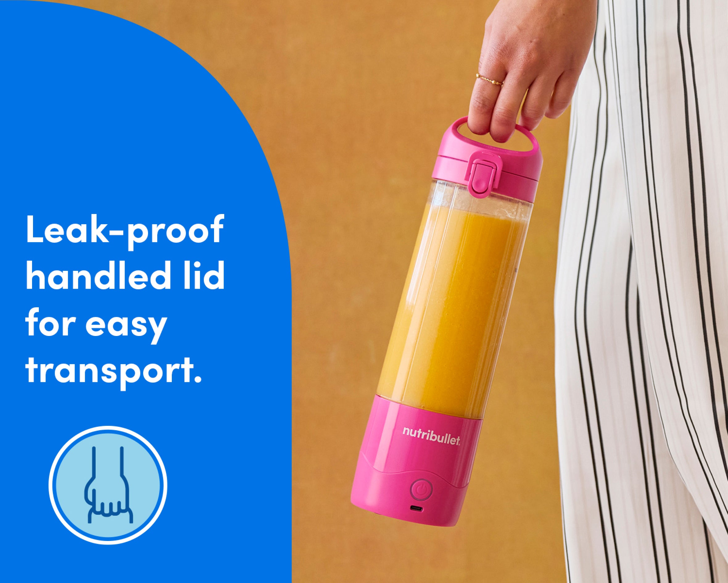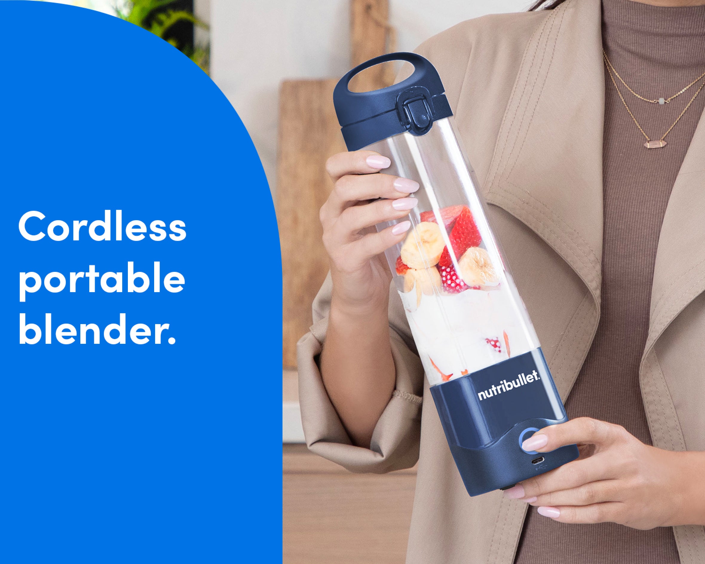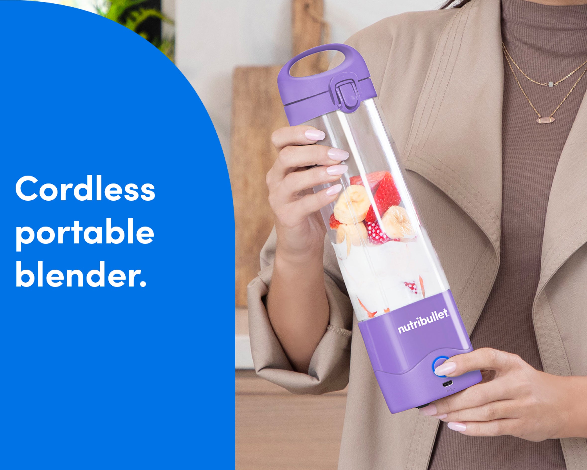 Lightweight, compact, and ready for adventure, the nutribullet Portable Blender lets you enjoy all your favorite smoothies, shakes, and blended drinks on the go. Its rechargeable USB-C battery powers 15+ blend cycles per full charge, while its handled lid makes it a breeze to carry on all your outings, whether you’re heading to the gym, the beach, the office, or anywhere else the road takes you.