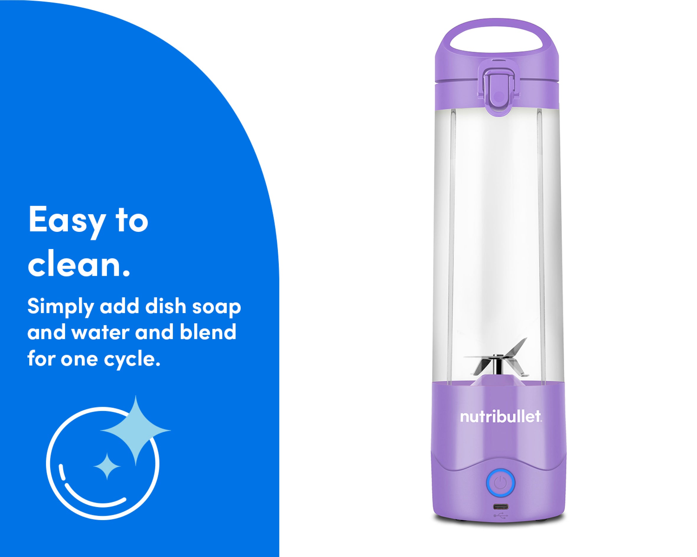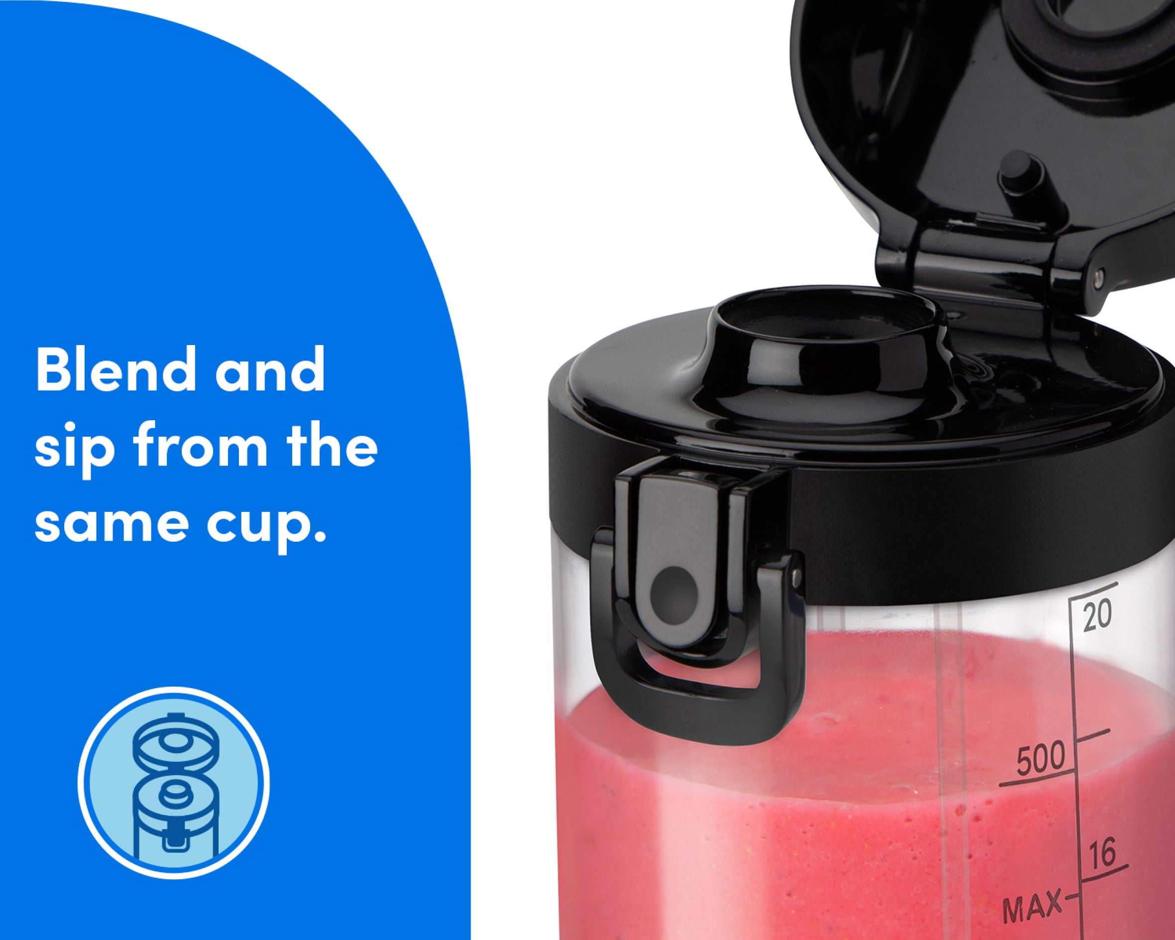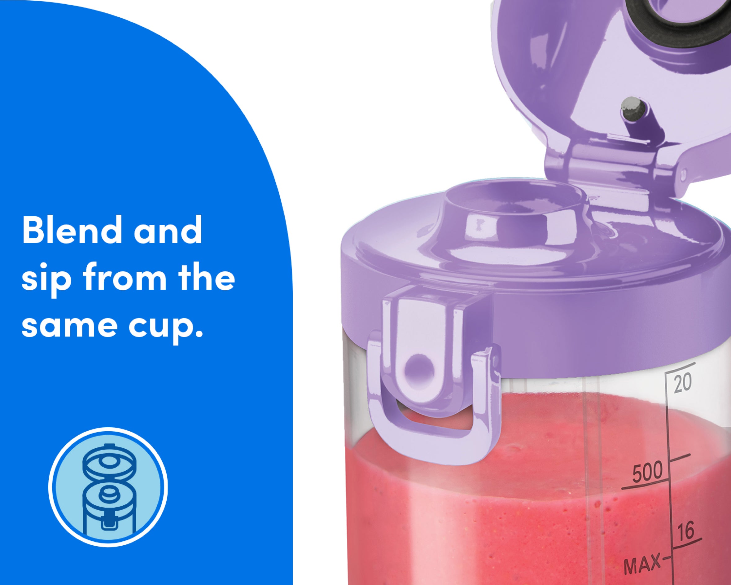 Fill the Cup with water and a drop of soap, then blend for easy cleanup. The Cup and Lid are also top-rack dishwasher-safe.