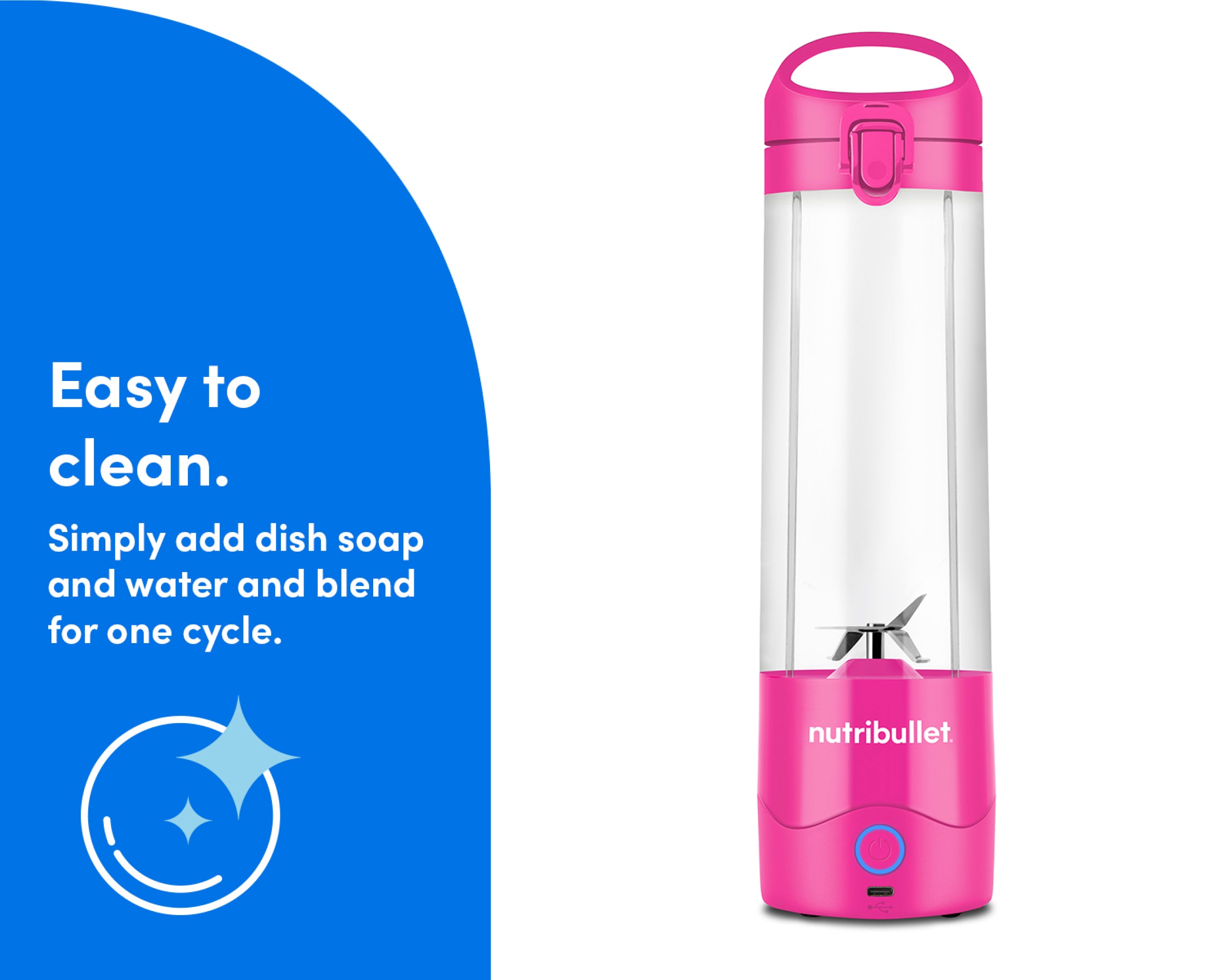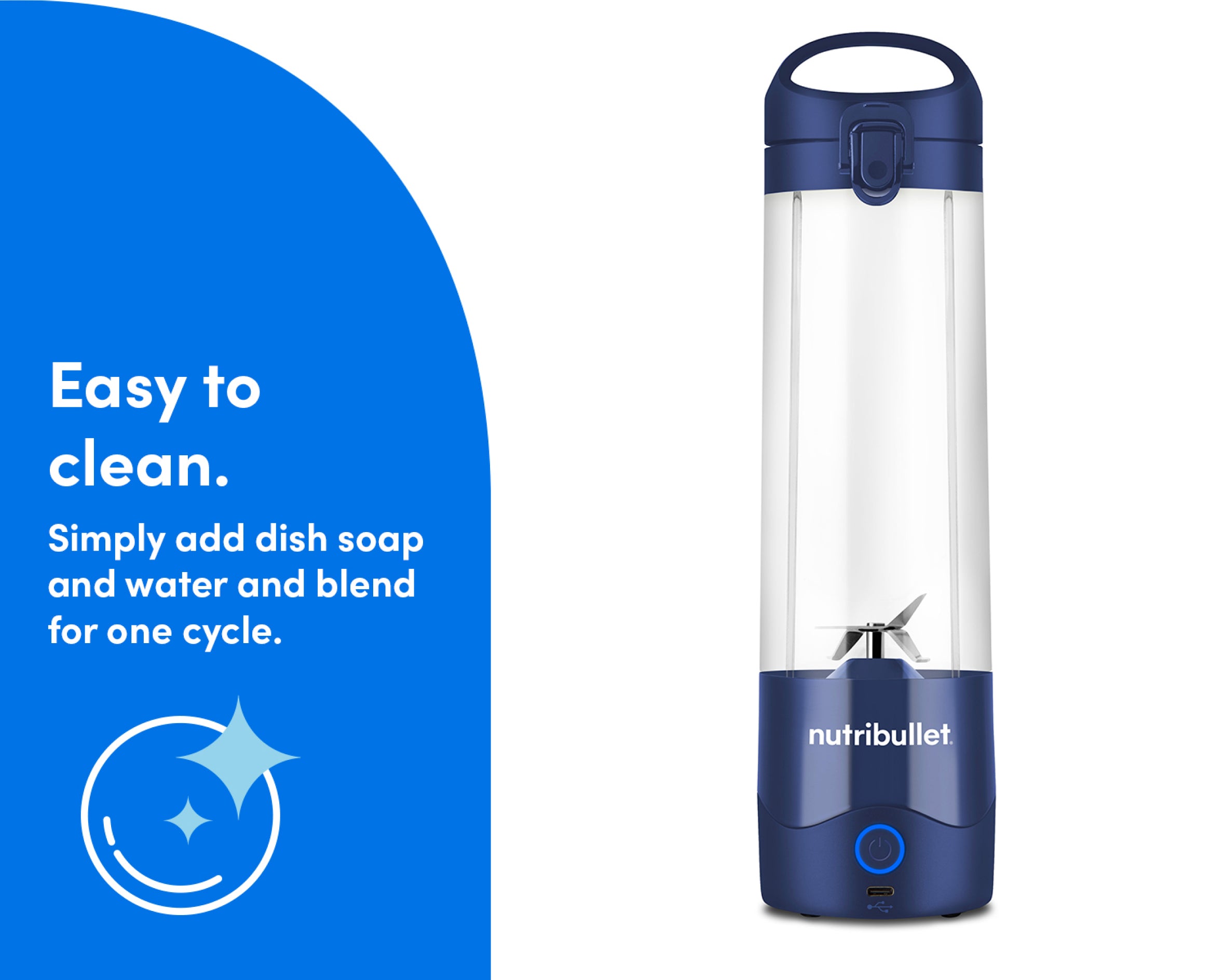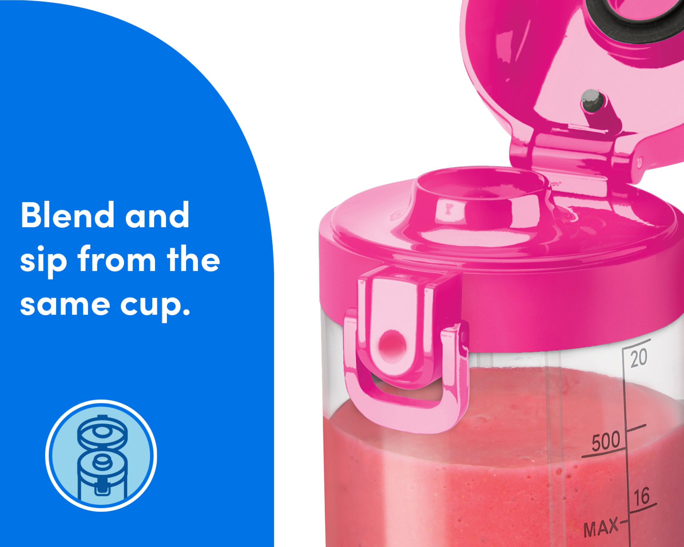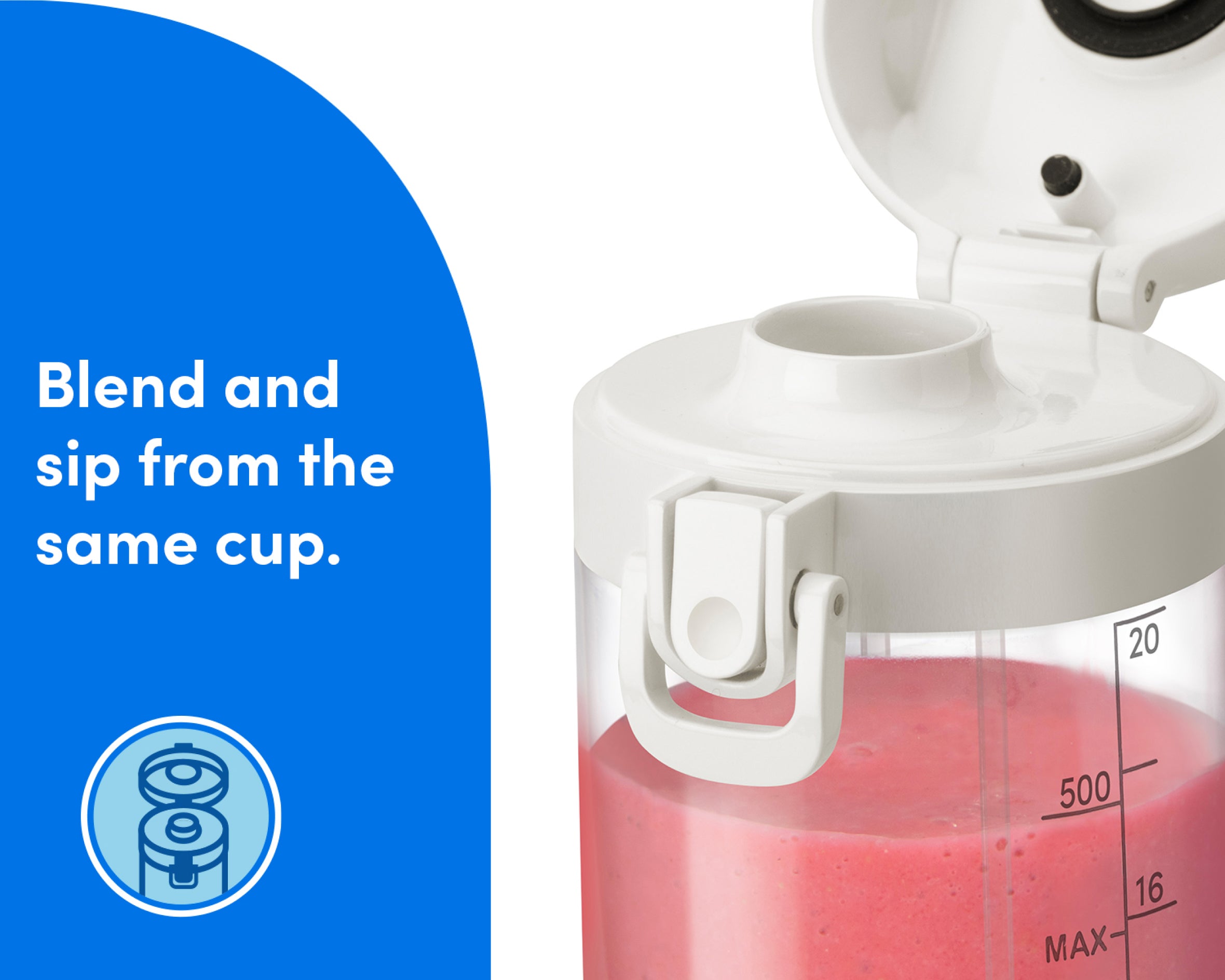 Fill the Cup with water and a drop of soap, then blend for easy cleanup. The Cup and Lid are also top-rack dishwasher-safe.