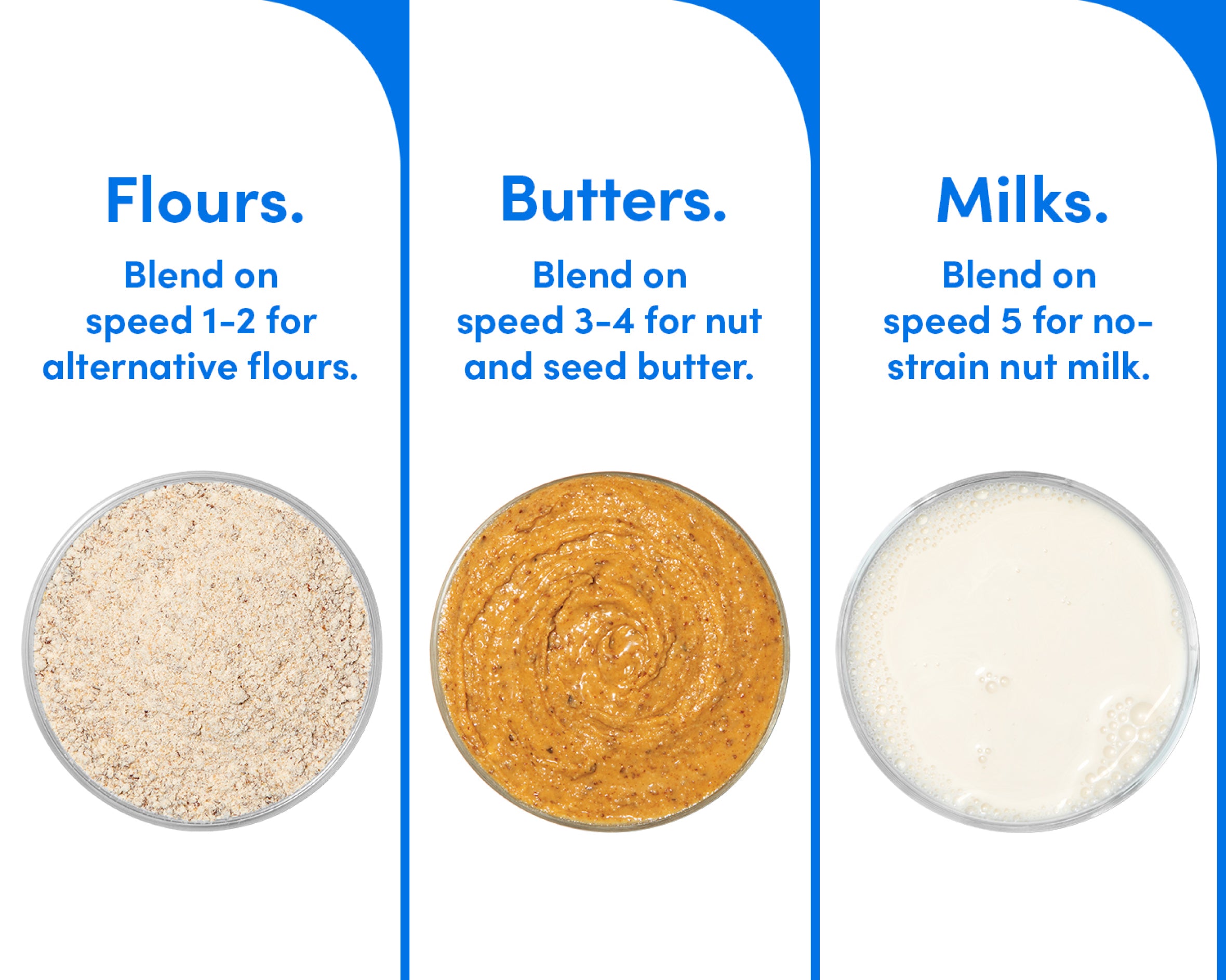 delicate nut flours to fully-emulsified nut milk – no straining required.
