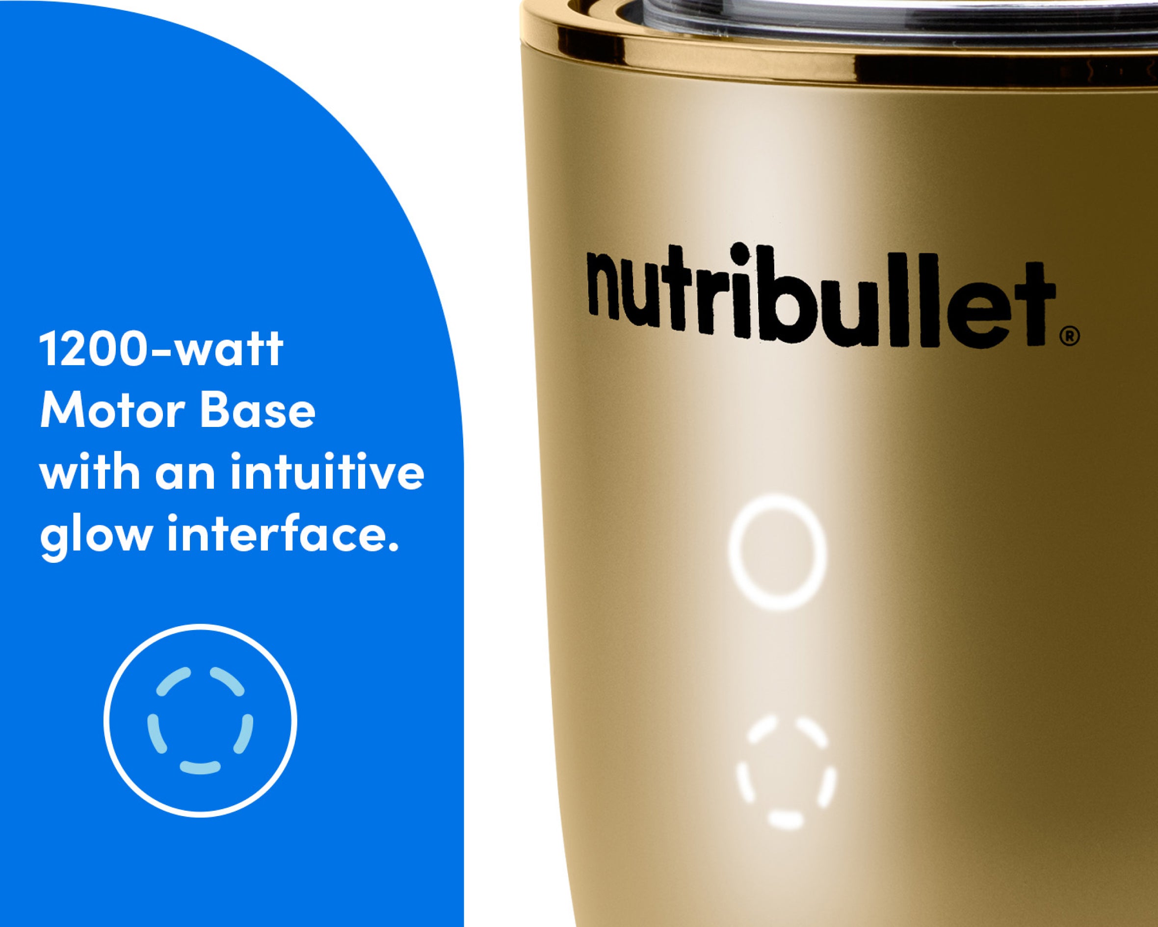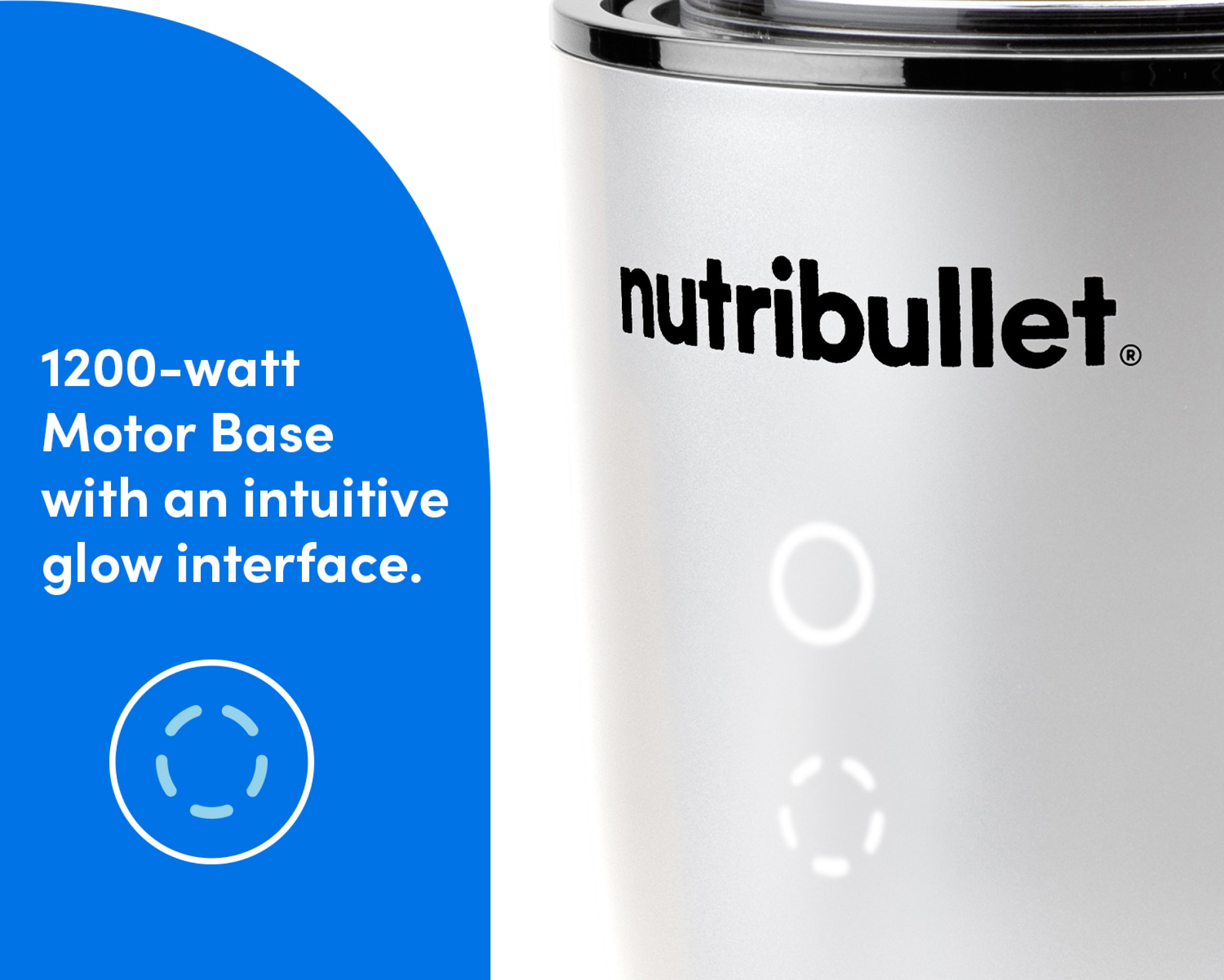 A glow interface illuminates two blending options as soon as your attachment meets the Motor Base. Choose the full circle for the automated cycle, or the pulse circle for hands-on control.