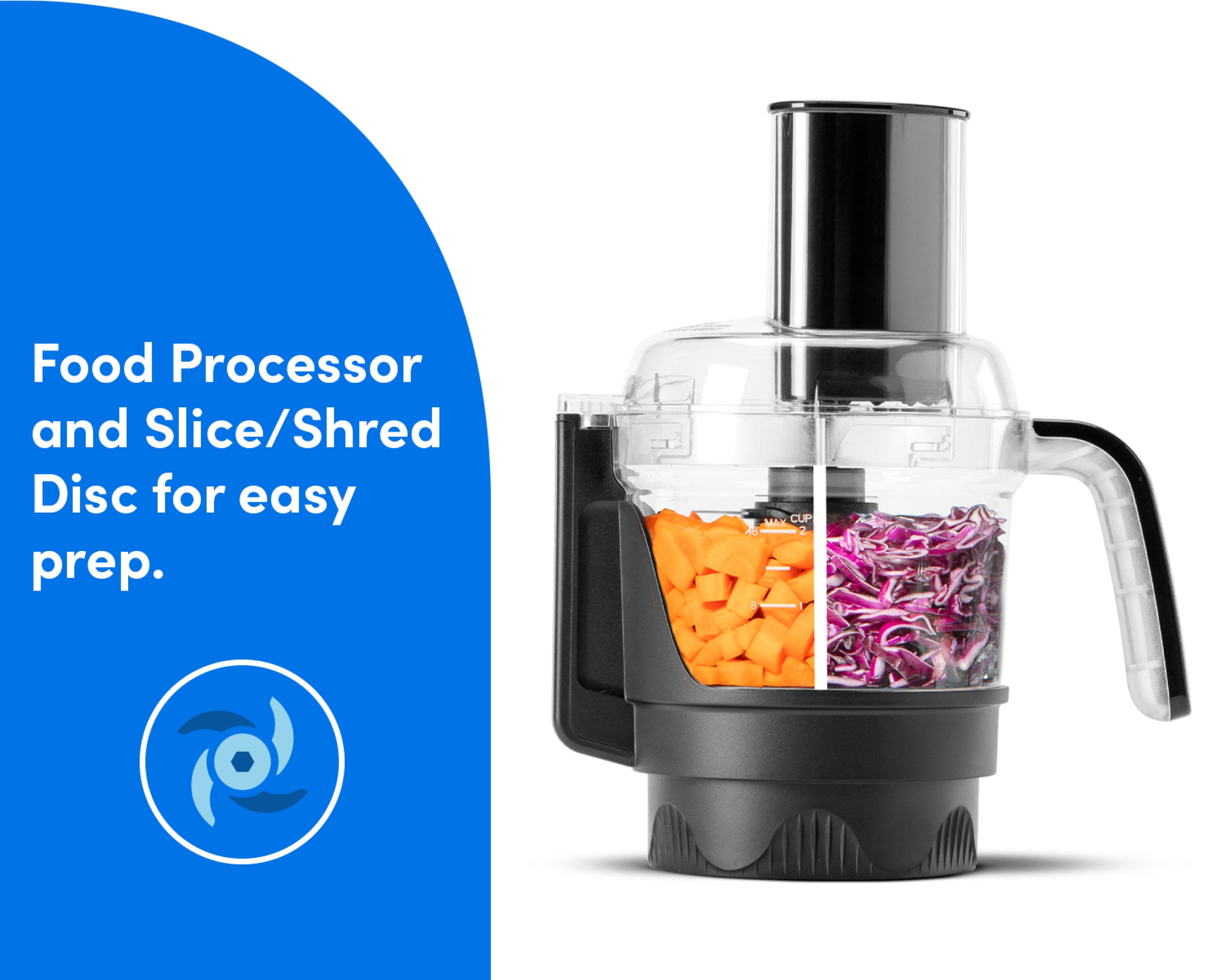Quickly chops, slices, and shreds a wide array of ingredients for unlimited culinary creations.