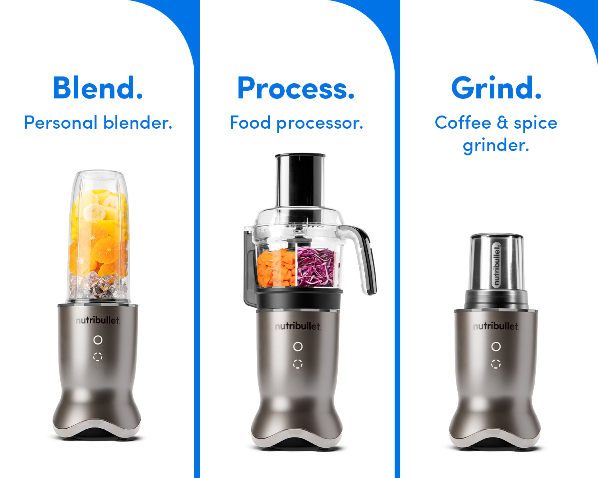 Operate a personal blender, a food processor, and a coffee & spice grinder, all from the same Ultra Motor Base.